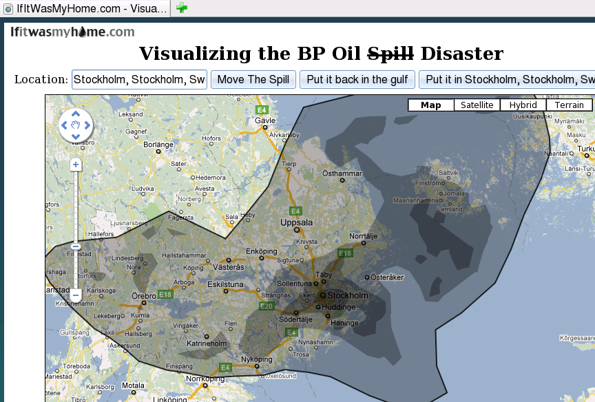 Just to give some scale of this catastrophy for people living in Stockholm. IfItWasMyHome.com - Visualizing the BP Oil Disaster